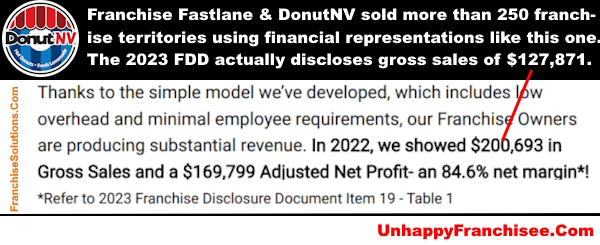 A close look at the FDDs reveal that DonutNV & Franchise Fastlane have produced some very questionable earnings claims that every prospective franchisee, every consultant/broker, the FTC, state regulators & law enforcement should look into.