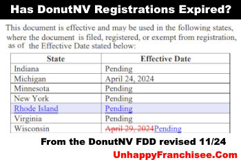 The DonutNV FDD indicates that the Michigan franchise registration may have expired 4/24/25.