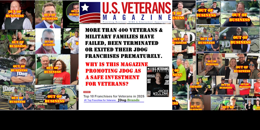 More than 400 Veterans & military families who invested in JDog Brands franchises have failed, been terminated or exited their businesses prematurely. Many lost everything, were buried with debt and even had their military disability checks garnished.