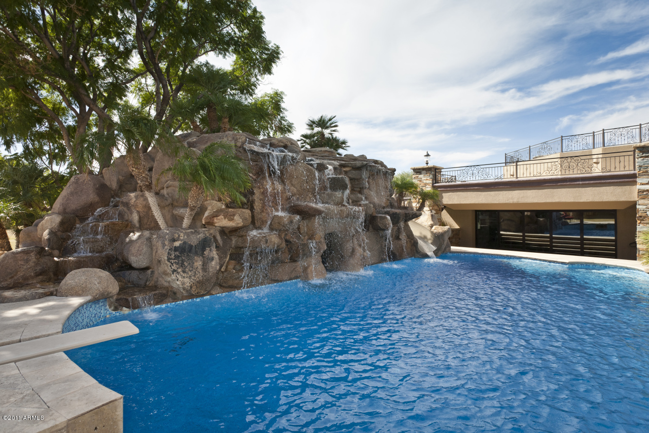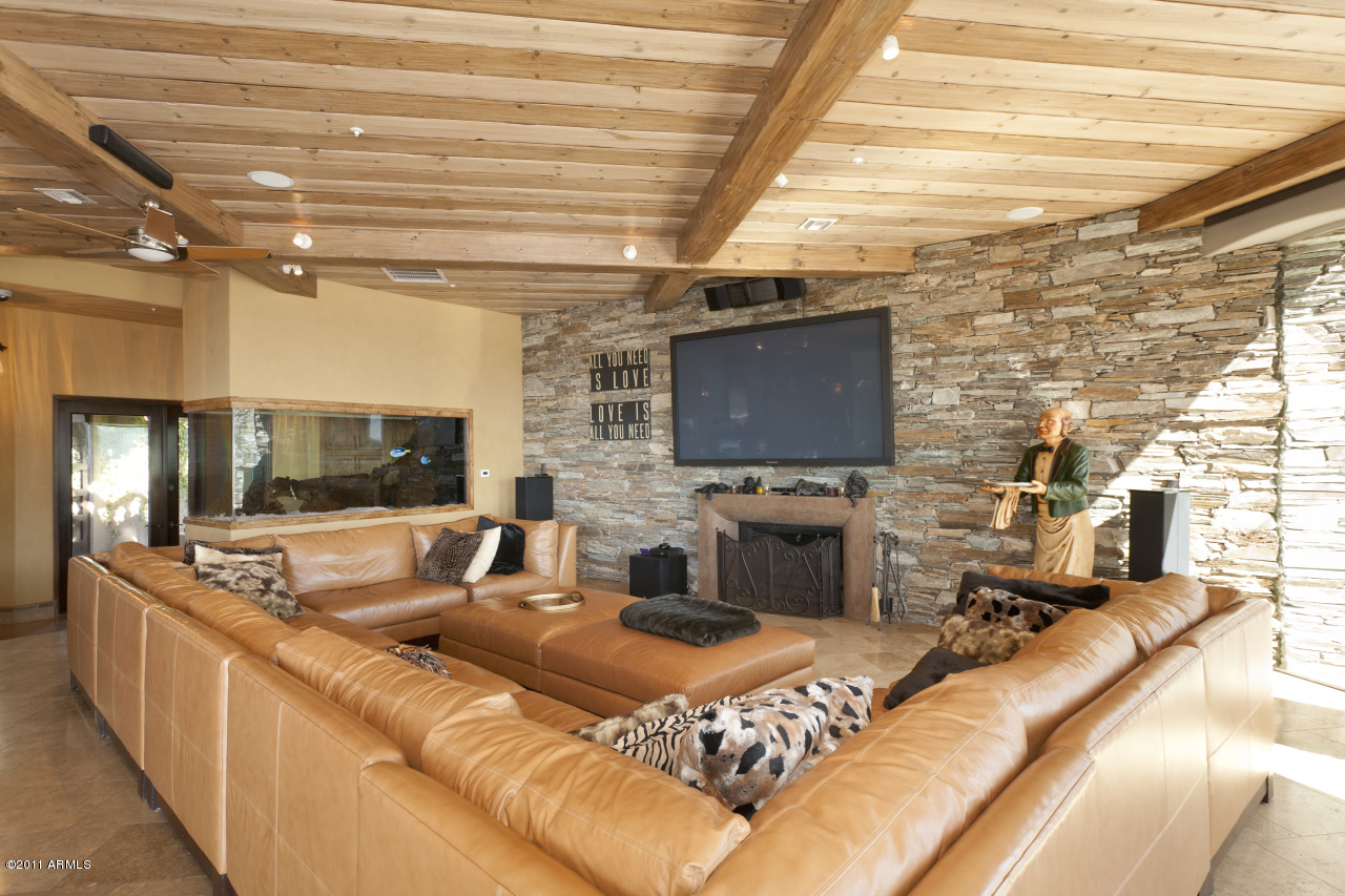 “Magnificent 8+ acre estate! Includes every imaginable custom detail-exquisitely appointed light fixtures, vanities, mirrors, to-wine room, game room, library with floor-to-ceiling book cases, office, unbelievable 40-seat theater complete with stage area, soda station and more! Athletes can enjoy complete gym facilities–weight room, lockers, steam shower and tanning room. Relax indoors or out-in sit down bar or lounge areas. Impeccably manicured grounds with waterfall, pond, pool, fire pits and tennis court. Car aficionado’s dream 2200 sq ft garage, complete with custom storage and hydraulic lifts. No detail overlooked in this one-of-a-kind masterpiece estate. * * TV’s, Crestron theater equip, Speakers & seating do not convey * * ”