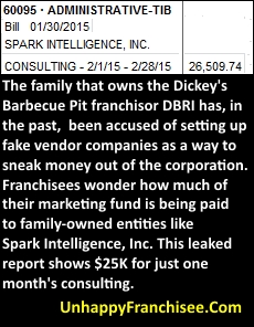 This prompts the question: How much of the franchisee’s money is being paid to companies (real or bogus) owned by Dickey’s family members.