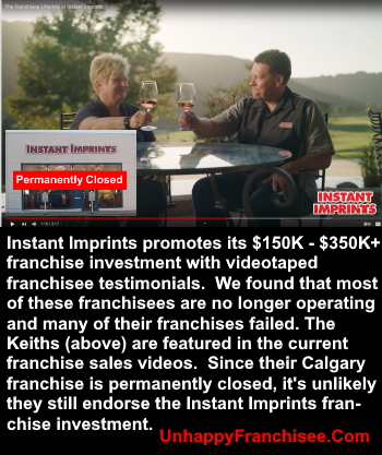 Acknowledgement: We gained a wealth of information and insight from the Instant Imprint franchise complaint site FranchiseIssues.Com. We are not affiliated with the Franchise Issues site, its author or its contributors. Our information is gleaned from publicly available sources.