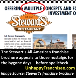 Big franchise expansion plans and a upcoming IPO may have prompted Stewart’s All American Corp., franchisor of “Stewart’s All American, to cross the line from overzealous to illegal in its franchise advertising and sales efforts. The company and its President Jim Laganke are being sued for fraud by the franchisee of two failed Stewart’s franchise locations.