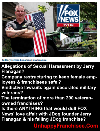 It started with a FOX & FRIENDS broadcast in 2015 that hyped the JDog Junk Removal franchise investment Flanagan was pitching to veterans.